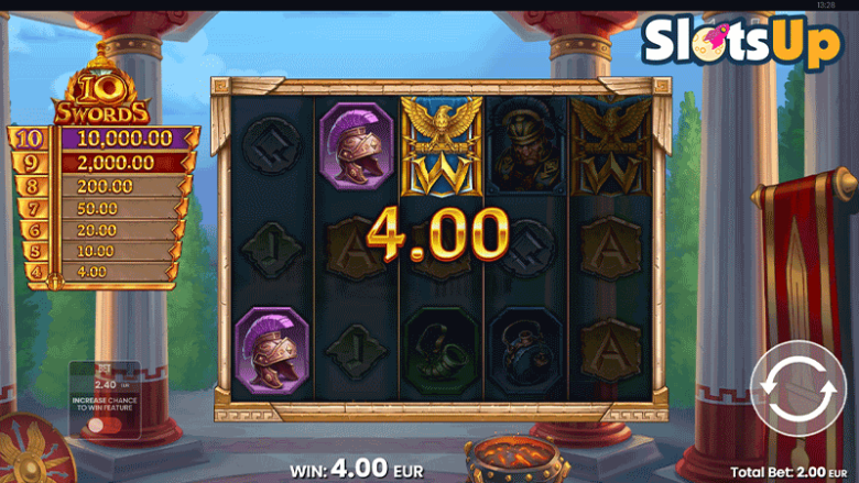 10 Swords gratis slot game heeft verschillende belonende functies die je helpen het maximale uit het spel te halen. Bovendien zijn de Wild, Scatter en Zwaard symbolen, samen met helmen, legionairs en keizers, de belangrijkste symbolen die bijpassende combinaties maken.