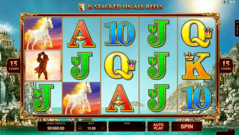 De machines van Microgaming hebben eenvoudige software waardoor gokkers de regels vrij snel begrijpen. Het aantal lijnen in de Titans of the Sun Hyperion slot kan niet gewijzigd worden, maar de waarde van de inzet kan wel aangepast worden. De maximale inzet per draai is 30 credits, wat deze slot interessant maakt voor kleinere gokkers. Met de Autoplay-optie kun je het aantal spins voor een automatisch spel selecteren. Je kunt een van de bestaande opties kiezen (10, 25, 50 of 100 spins) of het zelf aanpassen. De top 5 winsten worden weergegeven in het WIN-vak, waar je ook je recente winsten kunt zien. Je huidige inzetgrootte wordt weergegeven op een rol aan de linkerkant van het spelscherm. Je kunt het veranderen door omhoog en omlaag te scrollen.