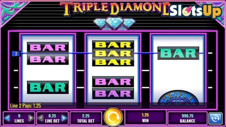 Triple Diamond Slot van IGT is een klassiek spel met een retro design. Het lijkt op de eenarmige bandieten van de goklocaties uit het verleden. De opdracht is om combinaties van overeenkomende tekens te verzamelen op drie rollen. De pokie biedt maximaal 9 winlijnen. De inzetten variëren van 0,25 tot 20 credits per lijn. De totale inzet hangt af van het aantal lijnen (kies van 1 tot 9).